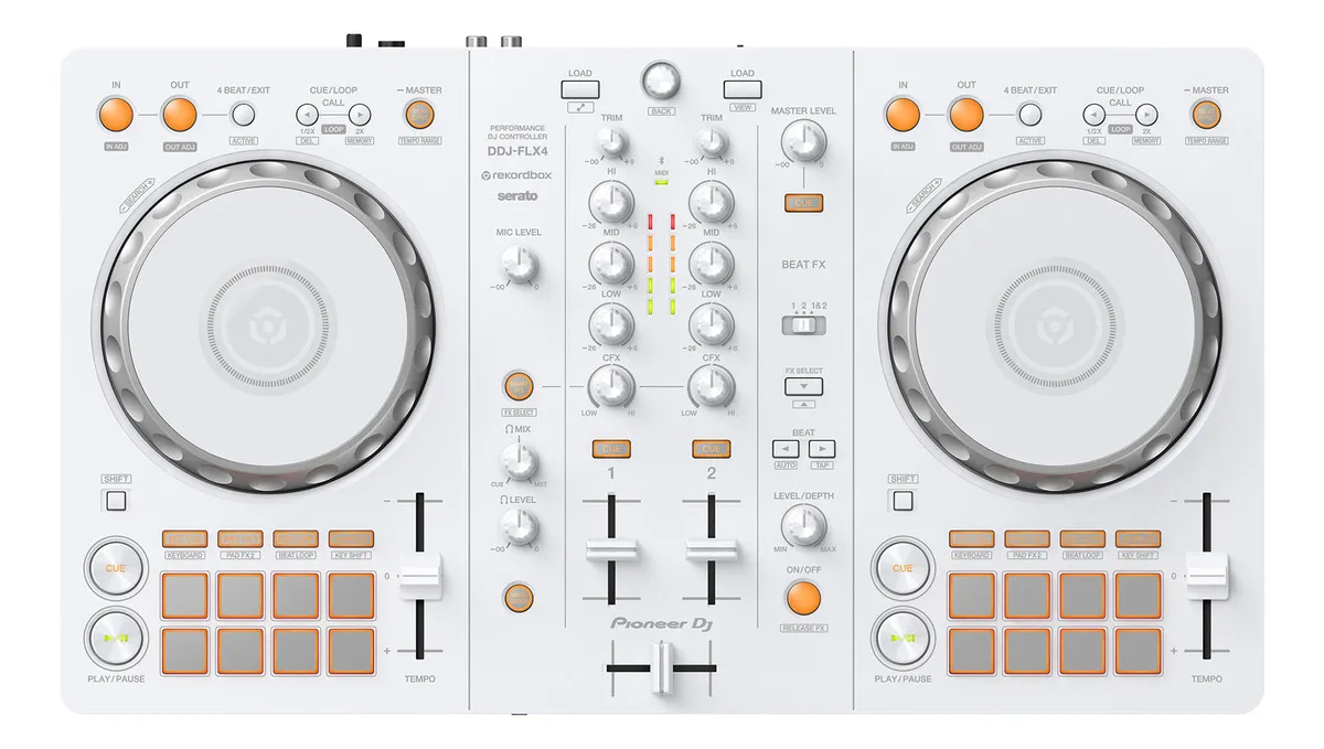 A controladora DJ Pioneer DDJ-FLX4 White oferece performance avançada e design compacto para DJs iniciantes e profissionais. Com interface intuitiva, conta com dois decks, jog wheels de alta sensibilidade e pads multicoloridos para maior controle durante a mixagem. Possui conectividade USB e compatibilidade com softwares como Serato e Rekordbox, garantindo flexibilidade na execução das suas tracks. Seu layout facilita o acesso aos efeitos e ajustes de volume, tornando a experiência de mixagem mais fluida e criativa.